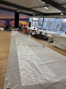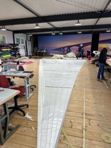 Zeilmakers van Lion Sails in overleg in de zeilmakerij